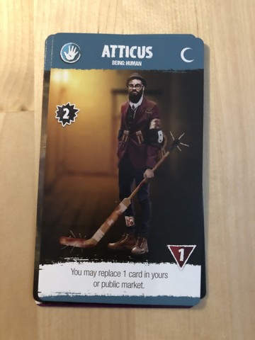 However, the twist is that each player (Vampires and Hunters) has a unique market row of their own that only they can buy from to get their own faction’s cards.