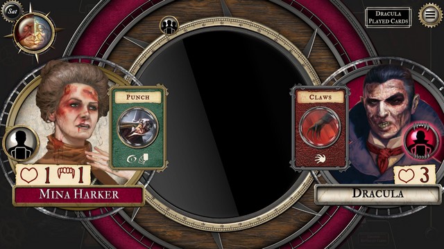 Players have some basic combat cards along with any combat items that they have in their hands. Each card will cancel a certain type of Dracula card. If it’s not cancelled, then Dracula’s card takes effect first and then the hunter’s card does. Once a card is used, it can’t be used in the next round of combat.