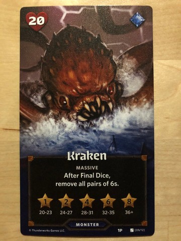 I really like the addition of monsters and minions that you can fight. It makes this seem even a bit more like an RPG that you are rolling a character for. The minions maybe not quite as much but definitely the end-game monster.