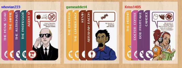 If you meet their favourite food (Roland above likes the Cinnamon Roll), you will draw another Dessert card.