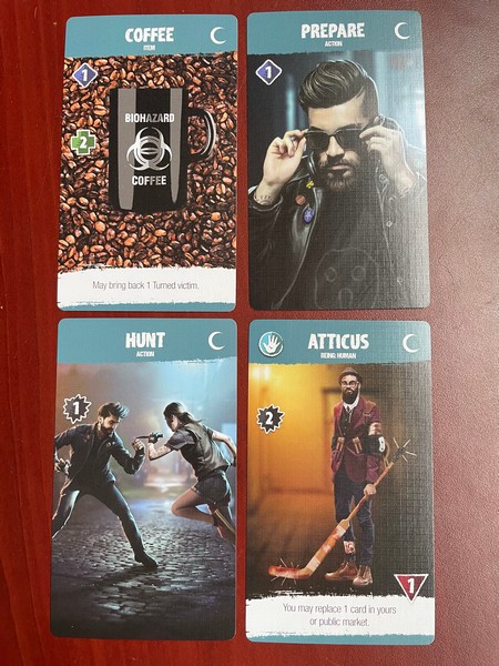 But there is also a market row of Hunter cards and Vampire cards, from which only the respective players can buy from.