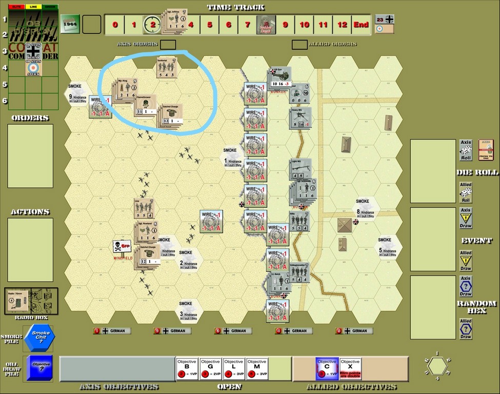 Rowland’s stack moved, and broke, but drew a Sapper event that removed the Wire in front of the Infantry Gun.