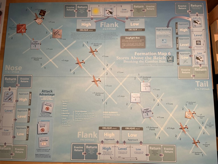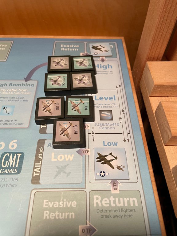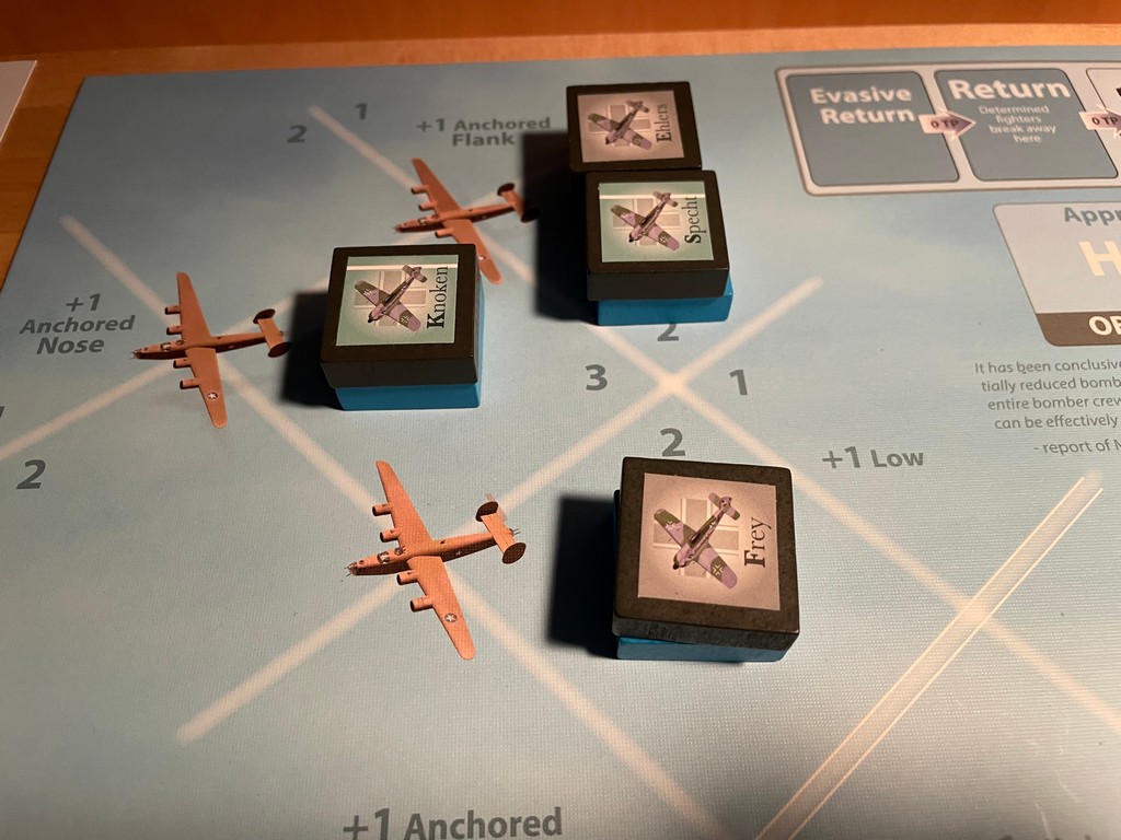 On Turn 5, with so many fallen bombers to chase and with Escorts all over the Tail position, Knoken and Frisch decide to leave and go after those knocked out of formation.