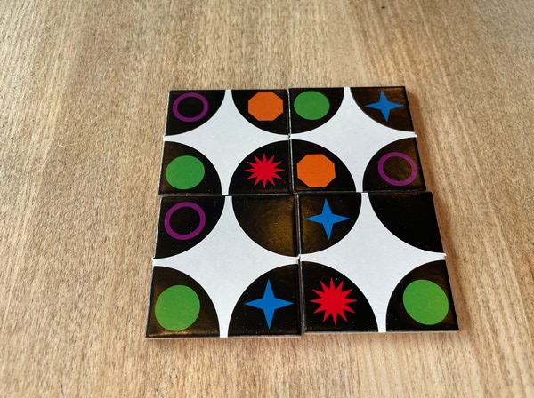 You will be placing a tile to match colours based on the starting 4 tiles (as shown above, which are picked randomly).