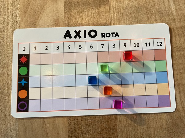 Axio Rota is an abstract Reiner Knizia game of matching colours on tiles and trying to score points that way.