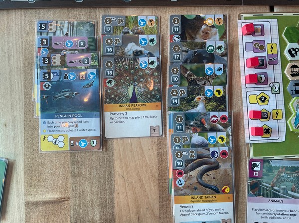 The tags in the top right can be important, just like in Terraforming Mars. Some animals or sponsorships may require that you have a certain tag in your zoo already.