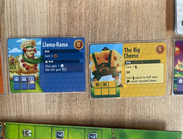 For The Big Cheese you only have a 33% chance of getting something, but what you get is pretty good. You get either one foot (to advance on the track) or you can gain feet equal to half of your Fan Track location (rounded down). These two go well together!