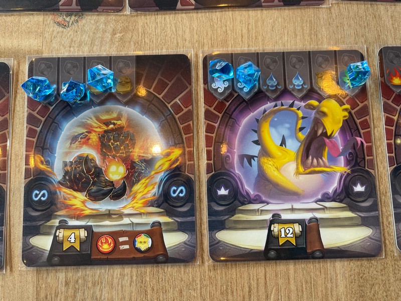 These portal cards require a number of crystals in order to be powered and gain the player points or abilities (or both!).