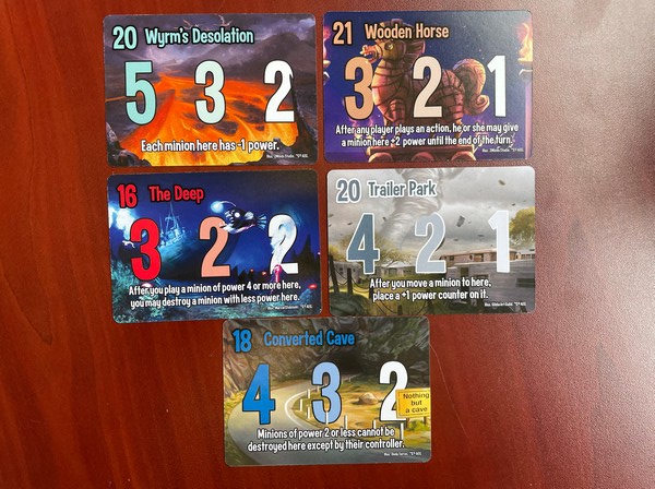 Finally, my favourite is Wyrm’s Desolation. A base where the winner gets 5 VP but all minions there have -1 power. It’s just the “f-you” that the Dragons love to give.