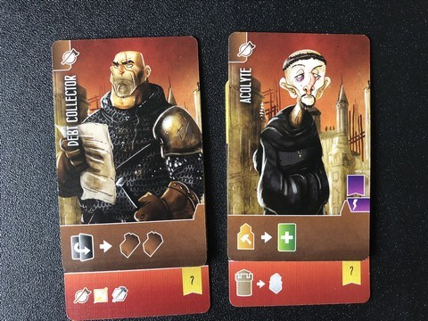 For example, the Acolyte above not only gives you a Building card when you build in the Cathedral, but also lets you free a worker from the prison when you do that.