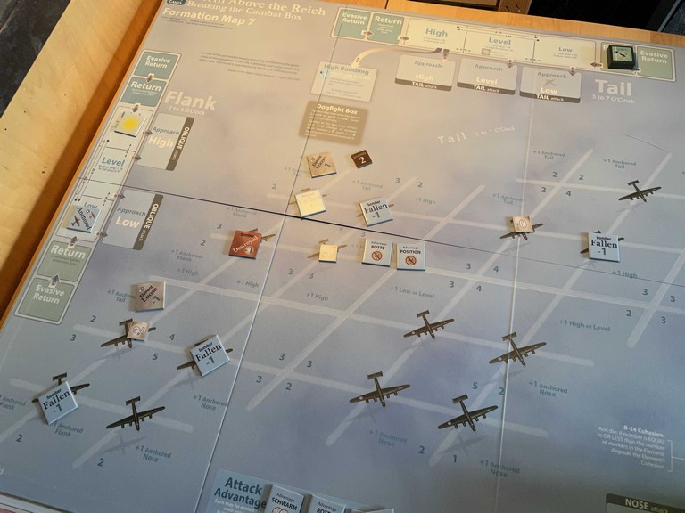Just to remind you, I am using the “Advanced Rules” for pursuing Fallen bombers, which means that I have to actually destroy a bomber to get VP. I don’t get any for just knocking the bomber out of formation.