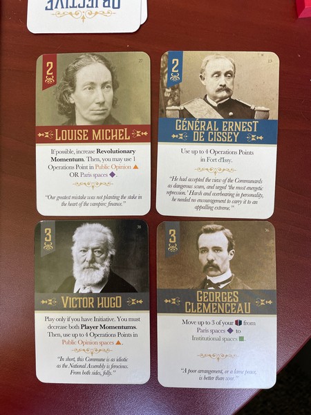 I’m really intrigued by it. We were definitely doing something wrong (tactically, not rules) because my Commune maxed out the military VP (for controlling Paris) while the Versailles player maxed out the political VP.