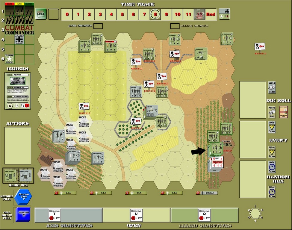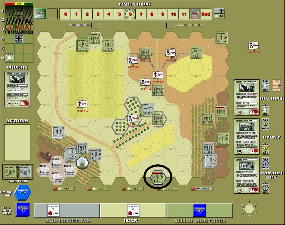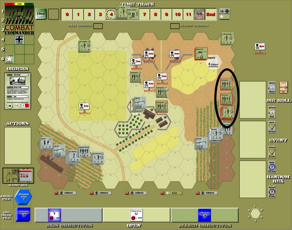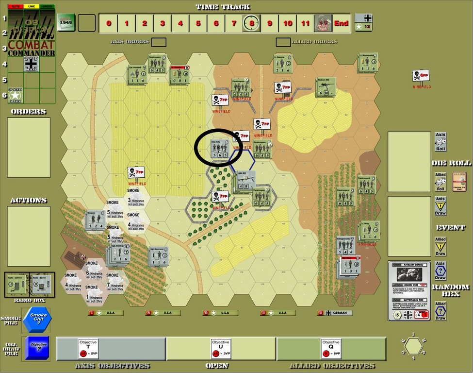 The Americans advanced into Objective 4 and caused a 6-VP swing (even though the squad broke due to leaving the minefield).