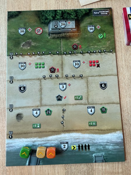 You can buy one-time use equipment cards which will help you storm the beach. These can give you bonuses or perhaps lessen the fire you take at the end of your turn.