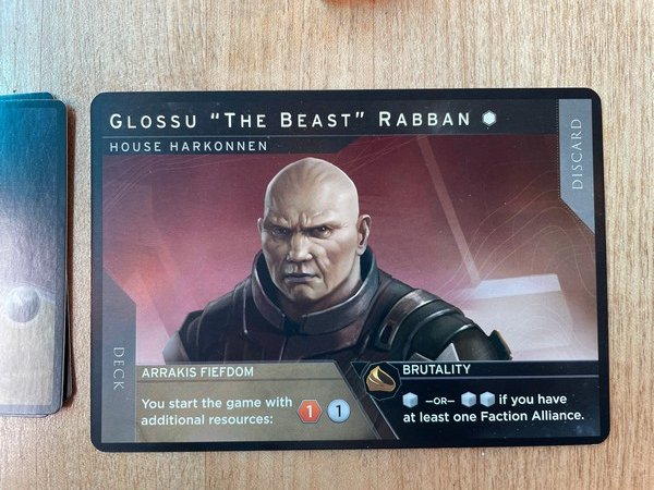 Each player is a character from the Dune movie/book (the artwork is from the movie) and each leader gives you a bit of a special ability.