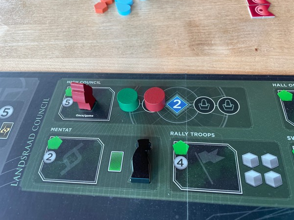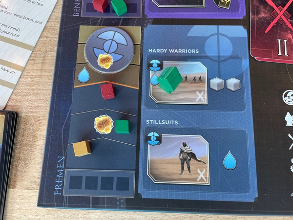If the card you play to place an agent has the Fremen symbol above, then you can go to one of the two spaces to increase your influence with the Fremen (one of them will cost a water to place troops in your barracks while the other one will give you water).