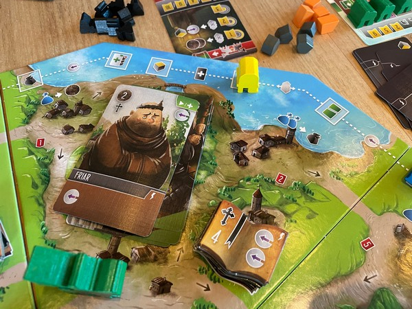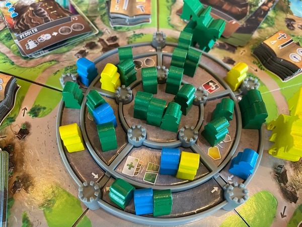 If you take it step by step, it works fine. But it’s really hard to explain to new players, especially if somebody is moving four meeples into the Castle at a time. If there are a lot of meeples in the Castle, it can also be hard not to knock pieces over.