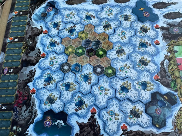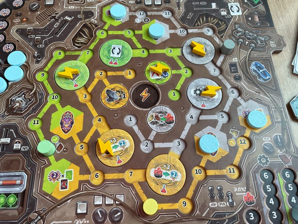 As you advance on the tracks, you will unlock powerful abilities and gain artifacts. The abilities can be used as a free action by spending energy tokens, which can really boost your turns.