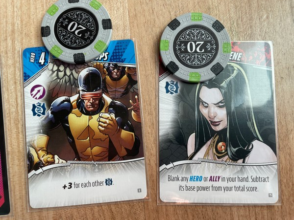 But most importantly, there’s the requirement that if you don’t end the game with at least one Villain and one Hero/Ally in your hand, you don’t get any points!