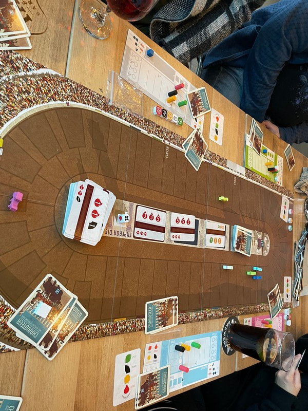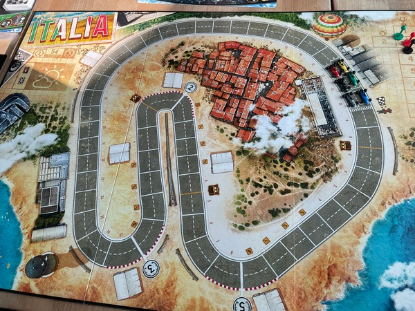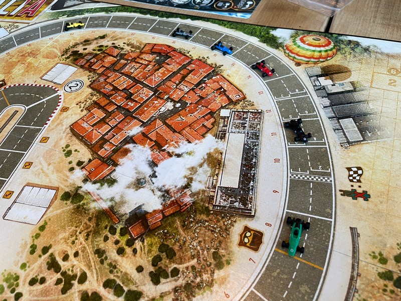 After opening the box, looking at the rules and the pieces, and getting it to the table, it’s actually quite family-friendly! In fact, this is a racing game that non-gamers could play, though there are some tactical decisions you have to make.
