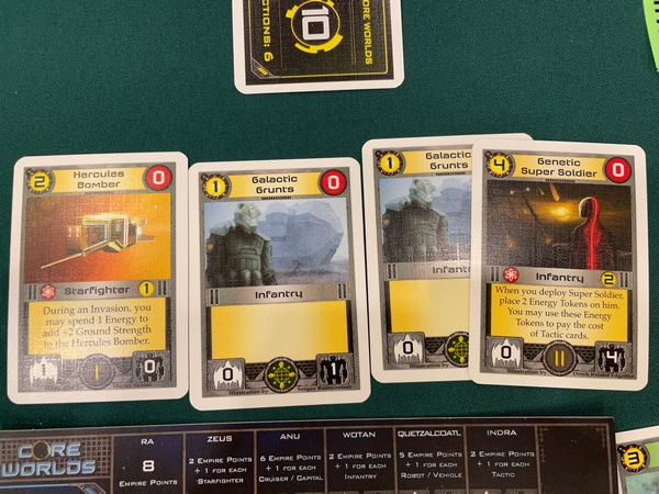 Core Worlds is a deckbuilder of sorts where you are acquiring spacecraft, infantry units, and technologies to invade a number of planets, working your way inward to the “core worlds.”