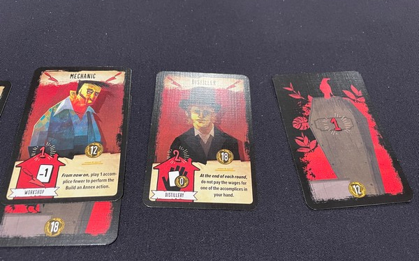 Customers show up to stay at your inn and you can bribe them to help you, play them from your hand to help you either kill a guest or bury a guest’s body that you’ve previously killed.