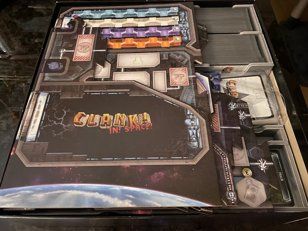 For Clank in Space, you assemble the arcade machine holder first (in the back of the box in the picture below), which brings me to my one minor complaint about this specific insert.