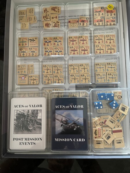 With 16 counters per tier, each tier fits perfectly into one of the compartments. The extra planes and nationality markers fit into the fourth compartment in the row.