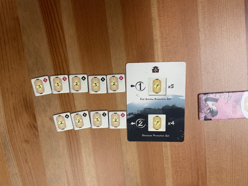 And it’s only slightly longer (though the original game can take a while as nobody wins until somebody has the most influence on three of the five geishas). Our plays took 20-30 minutes.