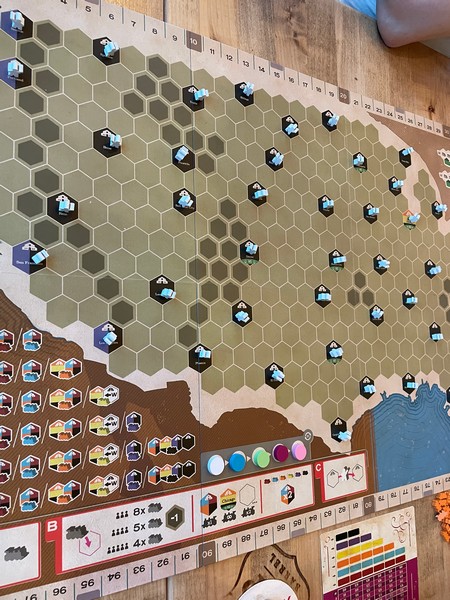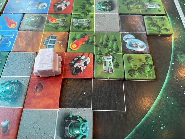 It’s a tile-laying game where you are exploring an unknown planet, extracting resources from it, and colonizing it.