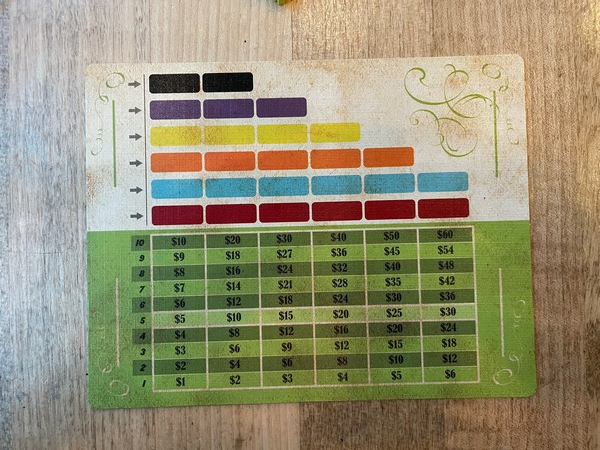 Each player starts with a player board where they will be putting a rail marker for one of the colours for each stock share they decide to take.
