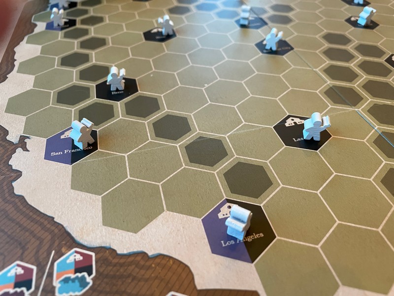 When you actually play the game, you are establishing train routes across the country and then moving a passenger from one destination to another, getting points for each section of the rail that you have stock shares in.