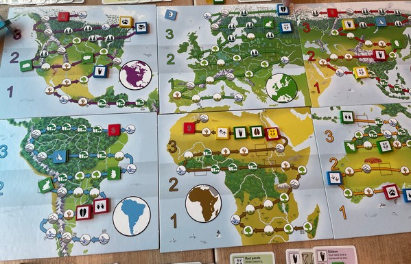 Here’s a picture of the continent maps near the end of the game. A lot of species have advanced!