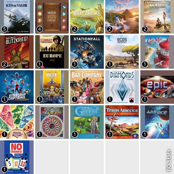Many thanks to Boardgame Stats for the wonderful app that lets us keep track of our games.
