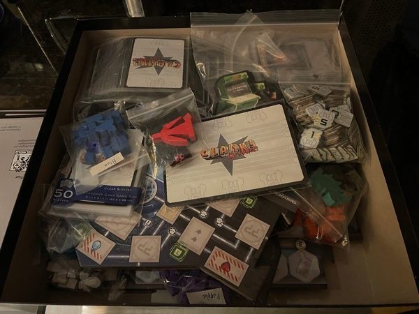 For me, it depends: For games with many small and distinct components (say, a wargame with an intricate OOB), a storage solution helps. Otherwise, I’m a baggie person… if only because I kinda know which kind of bag I need for which set of components! (Having a not-so-huge collection helps with that.)