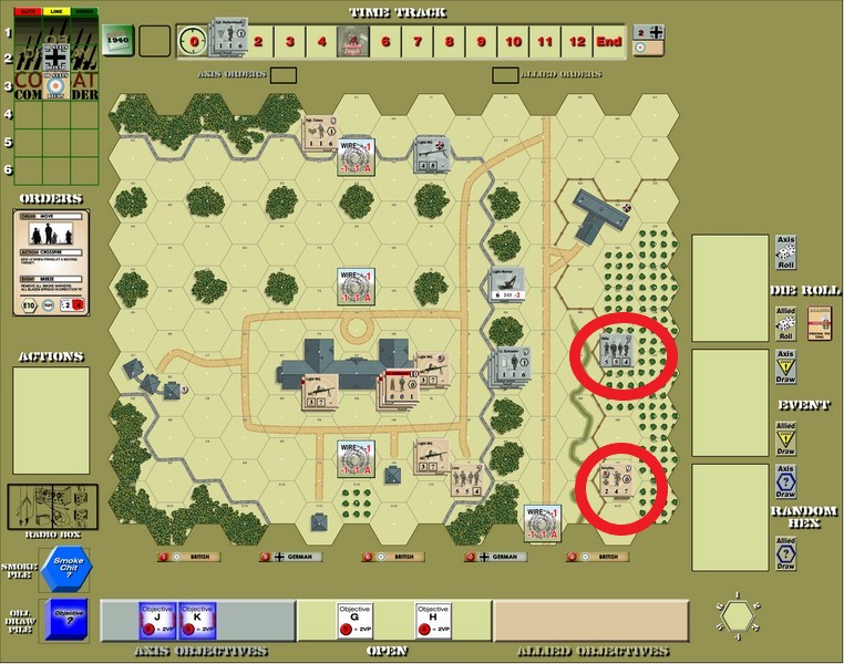 Secondly, the Germans can put up to one unit, one team, one leader and one weapon on either the 1 or 2 space on the Time Track to come in later in the scenario. That’s a way so you can see what’s happening and deploy some units to take care of it.