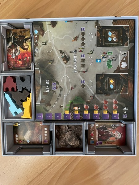 Finally, putting the Influence board, new Guild Hall board and the other player aids fills it right up to the top.