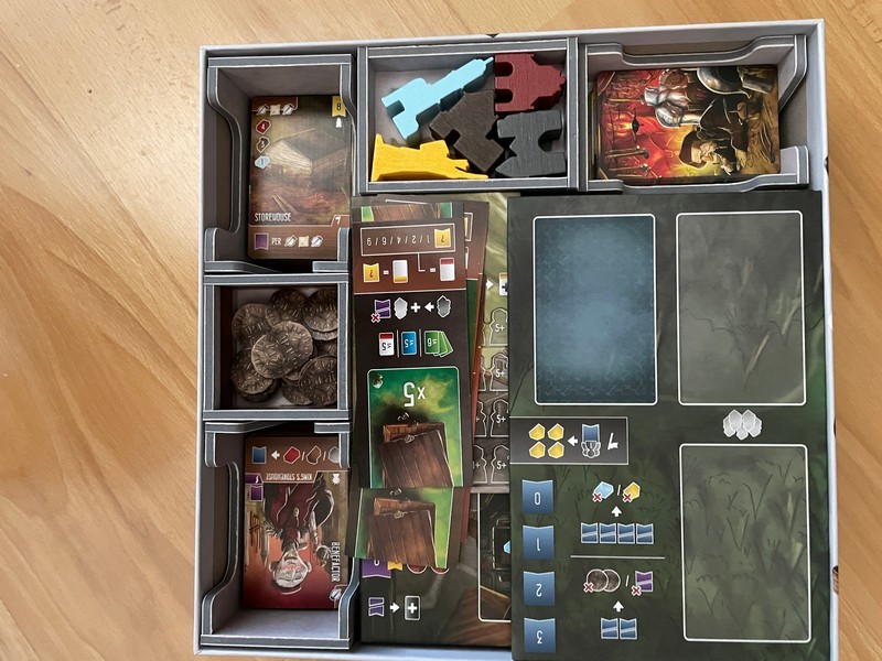 I really am a fan of this solution because it fits everything great into the box yet is so accessible when getting the game onto the table.