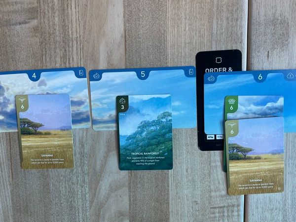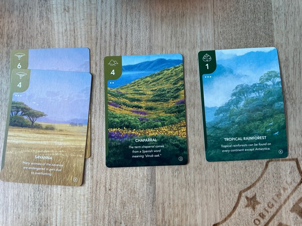 However, if you journal Subtropical Deserts later in the game, they won’t be in your first couple of columns, but they could score massive matching sets points for being the largest biomes in your journal. If they are in the 5th or 6th column (or the 7th or 8th, even better!), each card will give you a shit-ton of points (yes, I am still using that word).