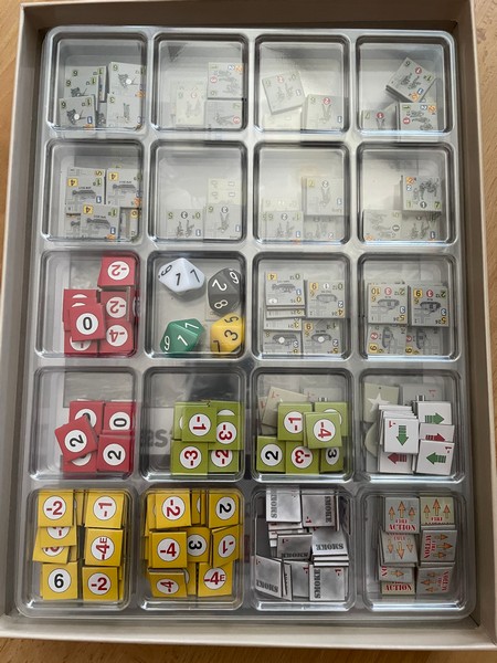 This design basically uses the same two trays as the second game did: two of the 20-compartment, 15 mm trays with one lid.