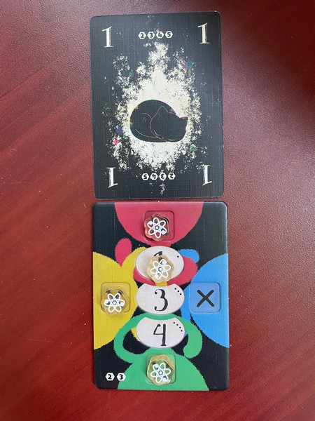 I do like the player board, though it’s difficult to get many points out of it. It’s nice for tracking what cards have been played, but I think the most I’ve ever seen somebody score was 3, and that’s assuming they meet their prediction.