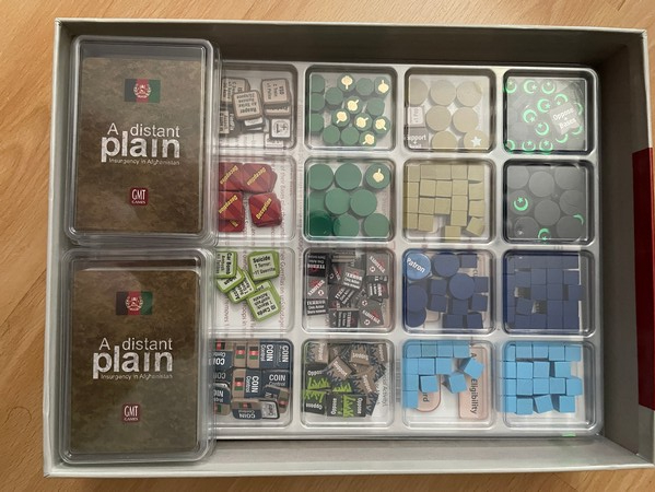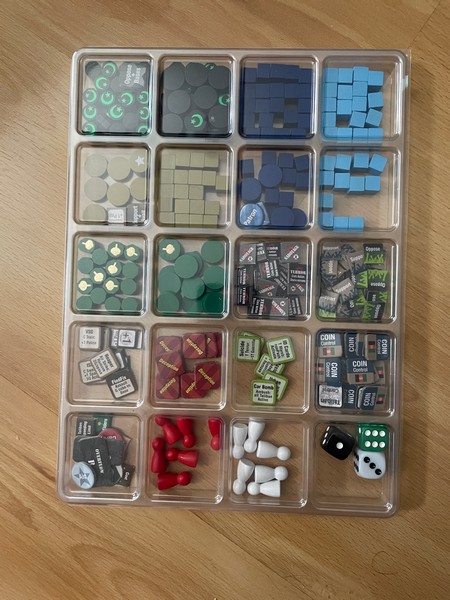 All of the game components actually fit into one of the Cube4Me 20-compartment, 15mm deep trays with a lid.