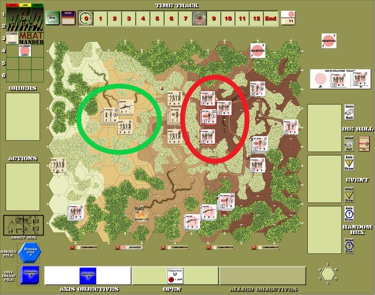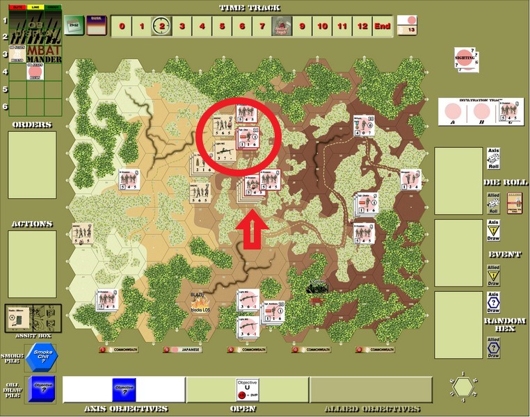 Oba instead moved north into the objective to join another Japanese squad, overstacking as well.