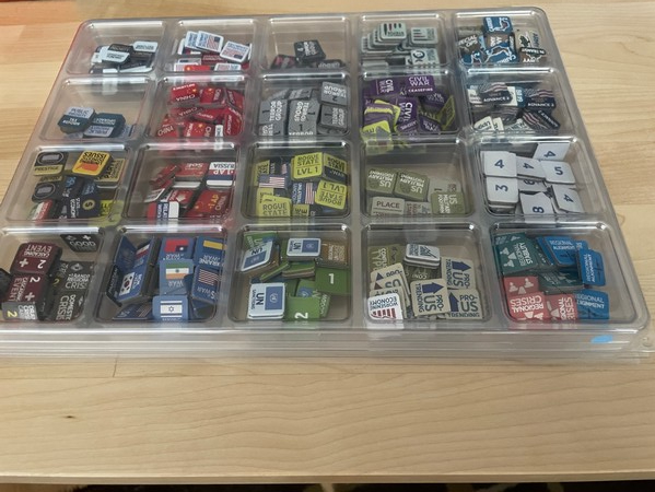 The Crisis cards fit into five of the 16mm 42 card trays. For once, the card trays aren’t overstuffed with cards!