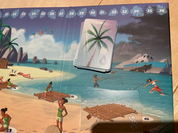 In the game, players are trying to gather food, water (if there is enough rain) and wood to build the raft that will get you off the island.