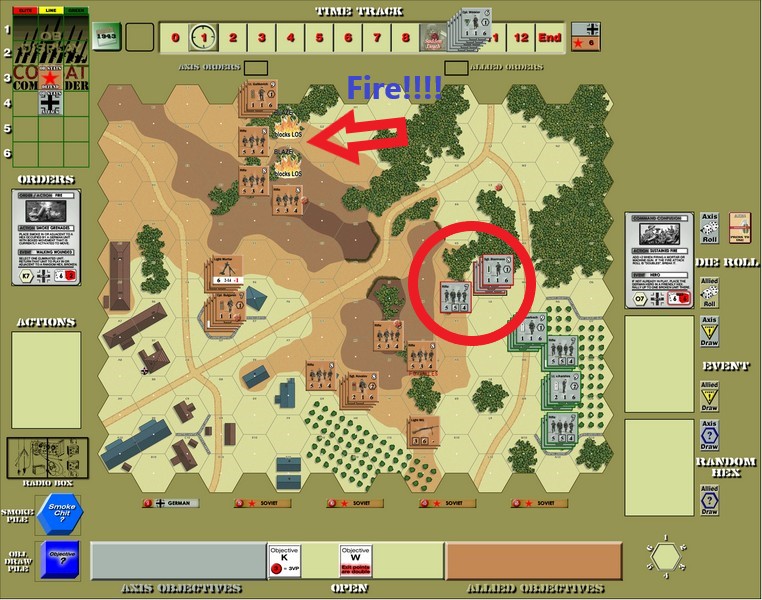 More fire brought some actual fire (a Blaze) into the north, a breeze that made it spread, followed by a German sniper that broke Lt. Gulkevich in the north!