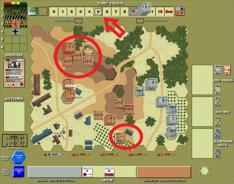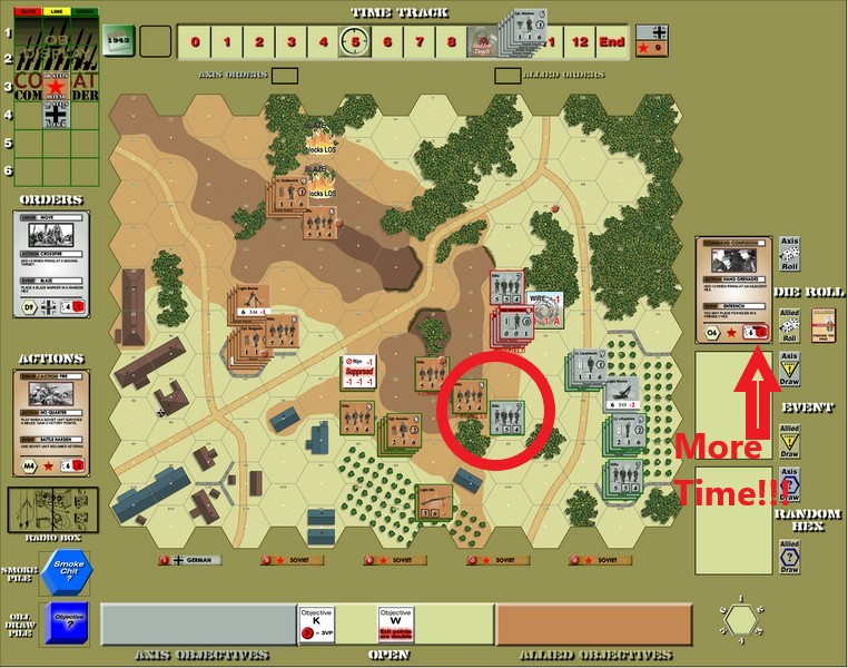 Even with Time advancing quickly, the Germans were now in a position to lay a world of hurt on the Soviets and I only had 9 VP.