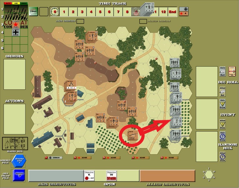 I essentially have to keep the Germans out of the town or, if I can’t do that, keep the reinforcements from getting back to that side of the board and exiting.