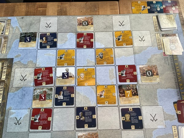 The Barracks Emperors (GMT Games) is a card game based on Wray Ferrell’s and Brad Johnson’s Time of Crisis, but only as far as artwork and time period is concerned.