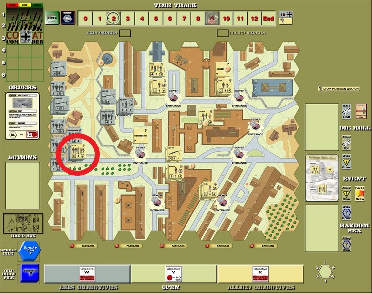 That meant that a Partisan Spotting marker moved there as well. Partisan reinforcements come onto the board on a Sighting marker.